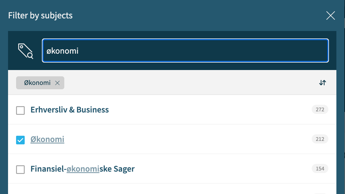 Lad os tage et eksempel, der ligger tæt på vores egne data. Vælger du emnet økonomi i Smart.pr, får du en liste med cirka 211 journalister og redaktioner.